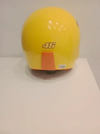 Casco de esquí de color amarillo brillante, con el distintivo número 46 en la parte trasera. Presenta un detalle naranja en la parte inferior. - Diseño llamativo. - Número 46 visible.