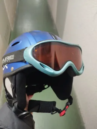 Casco de esquí azul con gafas, para niñ@ talla XS