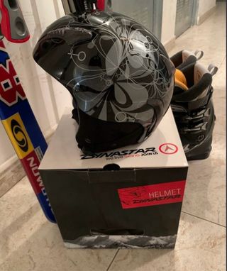 Casco de esquí de la marca Dynastar con un diseño moderno y elegante. - Color negro con detalles plateados. - Talla S. 56cm. - Incluye caja original. - Nuevo, sin estrenar.