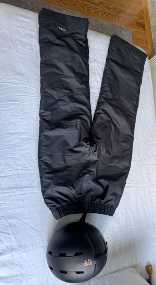Conjunto de pantalón de esquí para niño y casco. - Pantalón de esquí color gris, talla 14. - Casco de esquí negro.