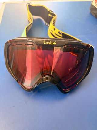 Gafas de esquí para niños de la marca Bollé. Para niñ@s de hasta 12-13 años. Sin arañazos importantes. Excelente calidad. Se regala casco de niño. - Lente con acabado espejo. - Correa ajustable con diseño. - Marco negro.