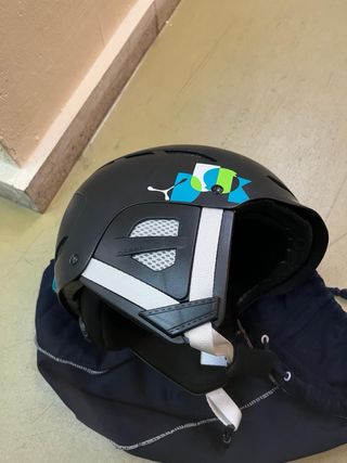 Casco de esquí o snowboard de la marca Head, talla XXS. - Diseño en color gris perla con detalles de colores. - Adhesivo decorativo con un caballo y el texto Head en mosaico. - Revestimiento interior de malla negra. Una de las orejeras tiene la tela un poquito salida y está menos rígida que la otra pero funciona perfectamente.