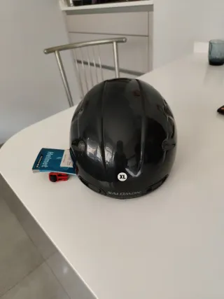 Casco de esquí de la marca Salomon en color negro. Diseñado para ofrecer protección y comodidad en la montaña. - Diseño aerodinámico. - Sistema de ajuste. - Acolchado interior.
