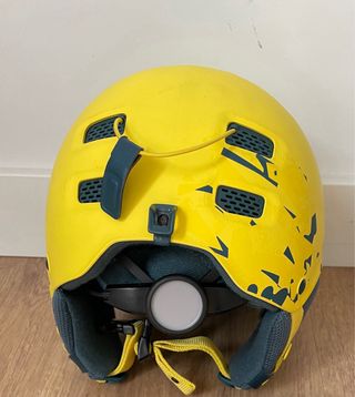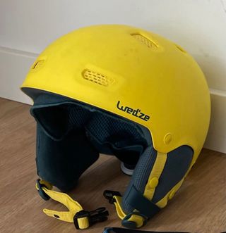 Casco de esquí de color amarillo fluorescente, ideal para deportes de invierno. Diseñado para ofrecer protección y comodidad. - Color: Amarillo chillón - Cierre de hebilla ajustable - Acolchado interior para mayor confort. - se ha usado 2 años 3 dias cada año .