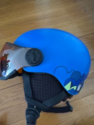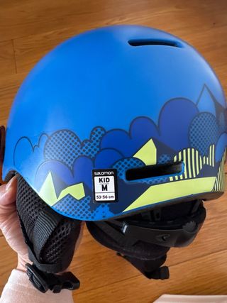 Vendo casco de nieve para niños con gafas incluidas, ideal para esquí, snowboard o juegos en la nieve. • Casco de color azul, resistente y ligero. • Interior acolchado para mayor comodidad y protección. • Gafas de nieve incluidas, protegen del viento y del sol. • Sistema de cierre ajustable para un ajuste seguro. Estado del artículo: Usado, con signos normales de uso, pero en buen estado y totalmente funcional. 📍 Se vende en persona en Valladolid o Palencia, o envío 🚚.