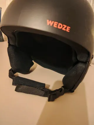 Casco de esquí Wed'ze, niño-mujer talla M (52-55 cm), en buen estado. Gama alta quechua, todo acolchado, oídos protegidos y almohadillas intercambiables y lavables. - Marca: Wed'ze MODELO MRZ400 - Talla: M (52-55 cm) - Peso: 480 gr - Incluye 2 almohadillas naranjas adicionales A ESTRENAR - Norma de seguridad EN 1077