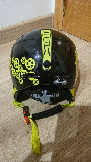 Casco de esquí para niños en color negro. Diseñado para proteger durante la práctica de deportes de invierno. - Talla 53-56cm Usado en pocas ocasiones. - Diseño aerodinámico. - Acolchado interior. - Cierre de seguridad.