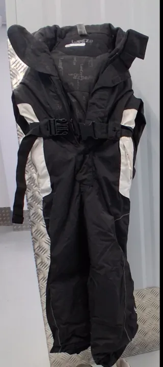 Mono de esquí unisex de la marca Wedze, ideal para disfrutar de la nieve. Talla 10 + casco talla s - Color negro con detalles blancos. - Cinturón ajustable con hebilla. - Capucha integrada.
