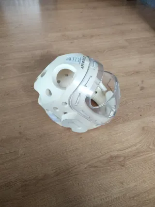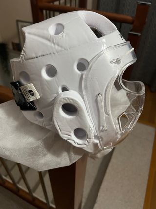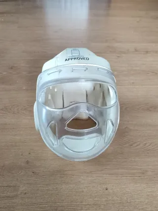 Casco de protección para kárate talla XS usado 2 veces - Color blanco. - Visera transparente. - Diseño para protección facial.