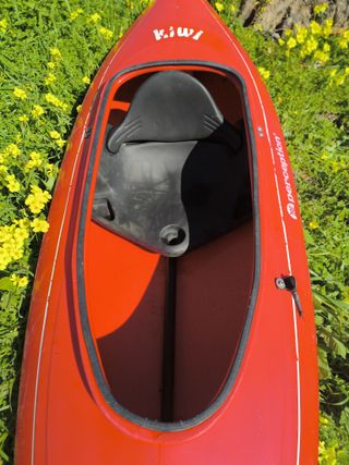 Kayak de recreo Perception Kiwi en color rojo. Medidas 280x73. Con evidentes signos de uso pero totalmente funcional. Se vende con su pala. Ideal para aprovechar el nivel de los embalses de Málaga. No es posible envío. - Casco de plástico resistente. - Asiento ergonómico. - Diseño compacto y manejable.