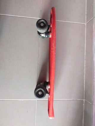 Monopatín listo para usar. Usado pero sólido y resistente. - Las ruedas han sido cambiadas recientemente. - Con marcas de uso, pero de buena calidad. - Incluyo casco negro niño, vale para bici también (pendiente confirmar talla)