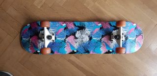 Monopatín listo para usar. Usado pero sólido y resistente. - Las ruedas han sido cambiadas recientemente. - Con marcas de uso, pero de buena calidad. - Incluyo casco negro niño, vale para bici también (pendiente confirmar talla)