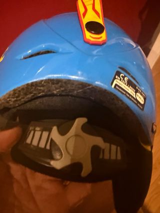 Casco de esquí para niños y niñas, con un diseño azul llamativo. Cuenta con un sistema de ajuste trasero para mayor comodidad. - Certificación EN 1077: 2007. - Peso: 315g. - Talla: 49-53 cm. - Fabricado en julio de 2014.