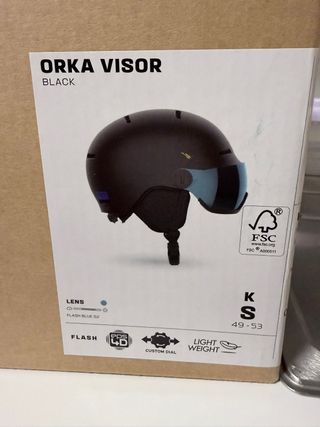Casco de esquí ORKA VISOR en color negro, talla S (49-53 cm). Ideal para niños. - Visor integrado. - Sistema de ajuste Custom Dial. - Ligero.