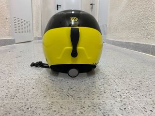 Casco de esquí o snowboard para niño de la marca Wedze. Diseño moderno en negro y amarillo. - Talla ajustable. - Cierre de seguridad. - Orejeras acolchadas. Talla S 53/56 cm Isado en dos ocasiones