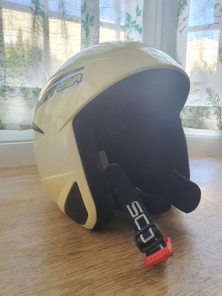 Casco de nieve niñ@, certificado. Se regala manoplas infantil. - Talla S (54-55 cm). - Color blanco. - Correa ajustable con cierre.