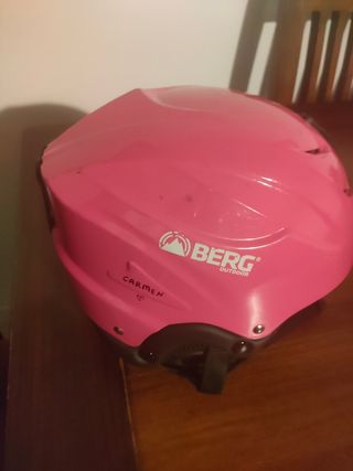 Casco de sierra para esquí de 48 a 52 cm. Muy calentito. Está en perfecto estado excepto el pequeño piquete en la parte delantera. No hemos querido taparlo para que se vea. Nosotros lo hemos usado con una pegatina y listo.