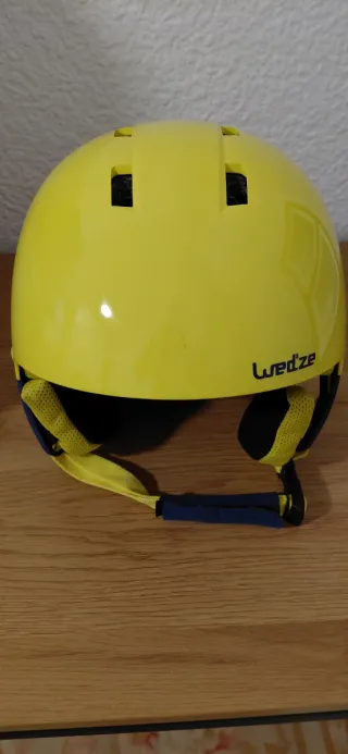 Casco de esquí de color amarillo brillante, marca Wed'ze, diseñado para niños. Cuenta con un sistema de ajuste para mayor comodidad y seguridad. - Color: Amarillo - Marca: Wed'ze - Diseño: Infantil