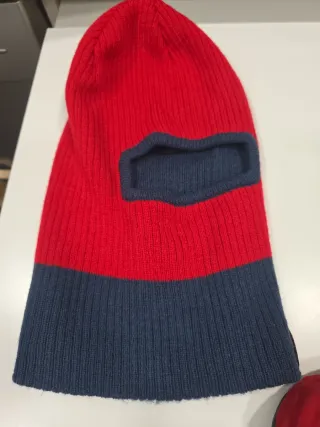 - Pasamontañas de punto en color rojo y azul. - 2 juegos de manoplas - 1 juego guantes interiores - 2 cascos Decathlon nuevos - 1 pantalón peto de esquí