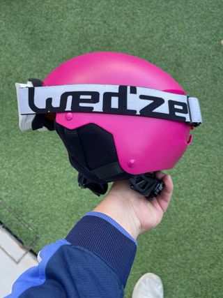 Casco de esquí Wedze en color rosa, diseñado para niñas. Perfecto para disfrutar de la nieve con seguridad. - Correa ajustable para un ajuste cómodo. - Diseño moderno y llamativo. - Mascara incluida - Talla XS. 48-52cm. Mi hija lo llevo de 5-9 años.