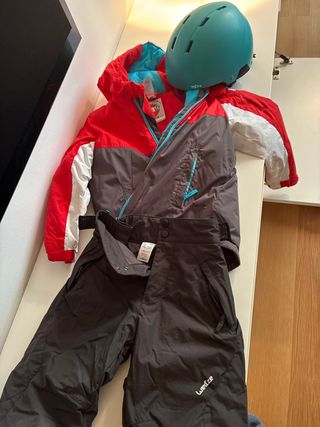 Conjunto esquí niño 5-6:pantalón, chaqueta y casco