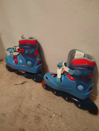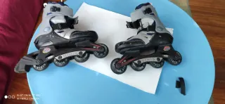 Se venden patines extensibles para patinaje en línea, ideales para tallas de la 36 a la 38. Incluyen casco protector. - Patines extensibles. - Talla ajustable de 36 a 38. - Casco incluido.