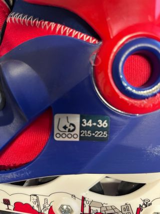 Patines en línea de color azul con detalles en rojo. Incluyen un diseño de estrellas y elementos gráficos. - Color: Azul y rojo. - Diseño: Estrellas y gráficos.