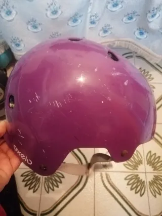 Casco de protección en color morado, ideal para patinaje. - Diseño con múltiples ventilaciones. - Superficie brillante. Talla 50-54 cm Usado por una nila, pero aún puede darse uso
