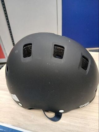 Casco de protección en color negro, ideal para patinaje. - Se puede adaptar al tamaño de la cabeza. - Diseño con múltiples ventilaciones. - Marca Oxelo visible.