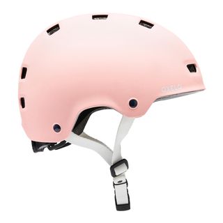 Casco protector para patines o monopatín. Su diseño es moderno y ligero. - Color rosa pálido. - Acolchado interior. - Cierre de hebilla ajustable.