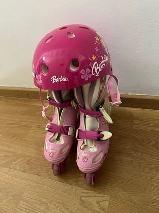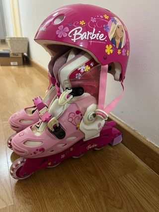 Set de patines y casco de Barbie para niña. Ideal para iniciarse en el patinaje con seguridad y estilo. - Diseño rosa con detalles de flores y Barbie. - Casco ajustable para mayor comodidad. - Patines con ruedas y cierres de seguridad. -talla 34/37