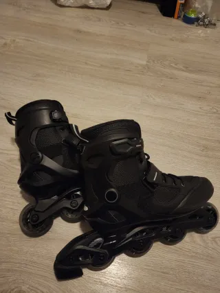 Se venden patines en línea de color negro. - Diseño moderno y funcional. - Ruedas de alta calidad para un deslizamiento suave. - Cierre seguro para mayor estabilidad. - vendo también casco y protección -número 46