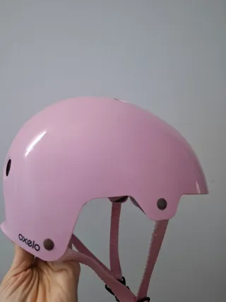Casco de protección Oxelo en color rosa, diseñado para patinaje. - Diseño de carcasa dura. - Sistema de ajuste con correas. - Ventilación para mayor comodidad.