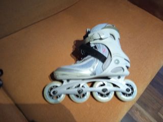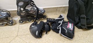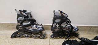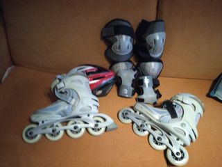 patines en linea ajustable talla 35 a 38 con sus correspondientes protecciones talla S y casco S. Todo con apenas uso