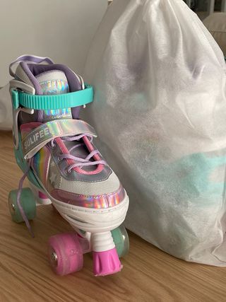 Patines en linea talla 35 a 38 y regalo dos pares de rodilleras, casco y bolsa para todo.