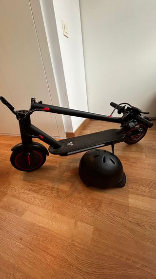 Patinete eléctrico en excelente estado, casi sin uso. - Color negro. - Diseño moderno y funcional. - Incluye casco protector negro.