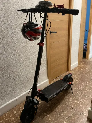 Patinete eléctrico en buen estado, listo para usar. - Diseño moderno y funcional. - Ruedas de goma con detalles rojos. - Plataforma con textura antideslizante. Lleva cargador Casco de regalo