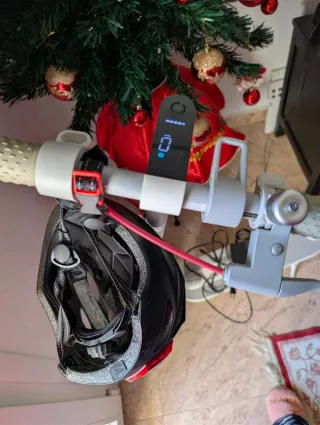 Patinete eléctrico Xiaomi con poco uso, junto con un casco de seguridad que incluye luces. - Patinete con 60 días de uso. - Casco con luces integradas.