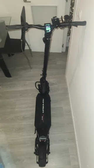 Patinete Teverun Fighter Mini con un año de uso. Equipado con doble motor de 500W, frenos hidráulicos de disco y suspensión delantera y trasera Factura en mi nombre. Fecha compra 05/12/2024. Homologado por la DGT Batería: 52V 30Ah Autonomía: hasta 100 km Motores: 2 x 500W Velocidad máxima: 25 km/h (limitado) Delimitado 75km/h Frenos: hidráulicos de disco (doble) Neumáticos: 10” (10x3.0) Suspensión: delantera y trasera Acompañado por: 2 neumático nuevos 1 par pastillas freno 1 casco 1 cargador 4 tarjetas NFC 1 disco freno 1 candado de freno con llaves 1 casco btwin 1 líquido anti pinchasso 1 suporte de mobil