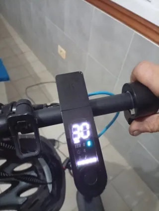 Patinete eléctrico con pantalla digital y luces indicadoras. Va incluído el casco y el cargador Precio algo negociable No envio - Pantalla digital azul. - Indicador LED rojo. - Luces LED azules.