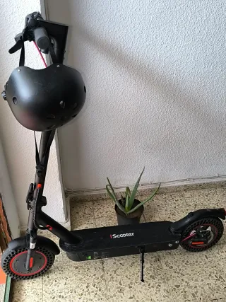 Patinete eléctrico en perfecto estado, listo para usar. - Diseño robusto y moderno. - Ruedas resistentes para mayor durabilidad. - Frenos de disco para una frenada segura. - Suspensión para un viaje más cómodo. casco de regalo