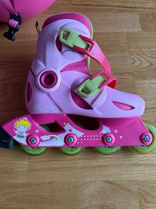 Patines niñ@ Oxelo, Decathlon talla del 28 al 30. Con mucho uso y rozaduras. Rueda bien. Regalo casco talla S 46-51cm