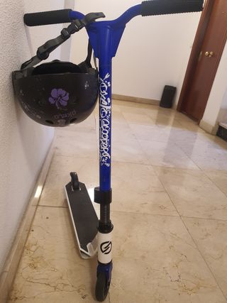Monopatín topicnoisy de Decathlon con casco y protecciones de rodillas, codos y muñecas. Todo en perfectas condiciones, poco uso.