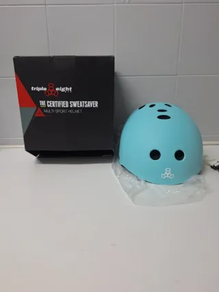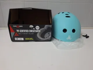 Casco de seguridad Triple Eight Sweatsaver en talla XS/S. Ideal para patinaje y otros deportes. - Color azul. - Diseño multi-deporte. - Certificado EPS Protection.