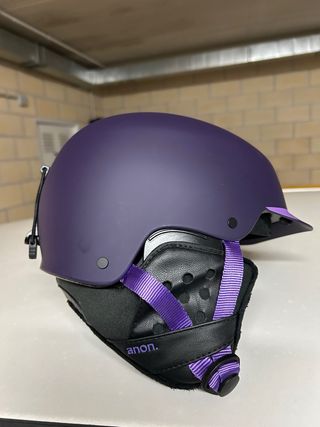 Casco de esquí o snowboard para mujer de la marca Anon. Diseño moderno en color morado. - Visera integrada. - Correas ajustables. - Forro interior suave. Está como nuevo, solo se a usado 2 veces