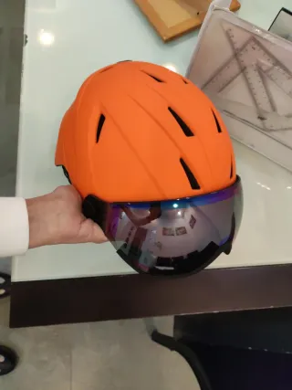 Casco de esquí y snowboard con visera integrada. Diseñado para ofrecer protección y comodidad. - Sin estrenar - Visera integrada para una visión clara. - Color naranja vibrante. -Talla L