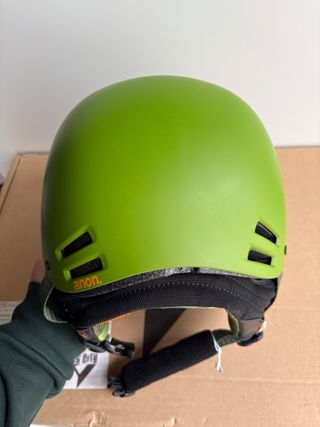 Casco de esquí o snowboard de la marca Anon. Diseño moderno y seguro. - Color verde brillante. - Interior con estampado de hojas. - Cierre de correa ajustable. - va ajustado a la nuca medida 55-57 cm PVP 120€ ahora 60€