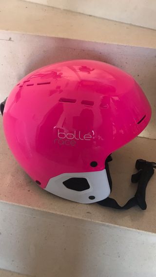 Casco de esquí o snowboard de la marca Bolle, modelo Race. - Color rosa brillante. - Diseño deportivo. - Correa ajustable.