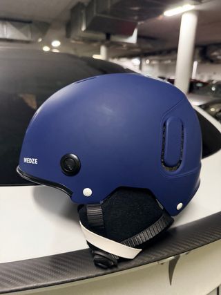 Casco de esquí Wedze color azul mate, cómodo, ligero y funcional. Ideal para esquí recreativo o snowboard. Cuenta con sistema de ajuste trasero para un encaje preciso, interior acolchado en buen estado y ventilaciones laterales. Casco bien cuidado, sin golpes ni fisuras, solo leves marcas estéticas del uso normal. Interior limpio y cierres funcionando correctamente. Se vende por no usar. Fotos reales del producto.