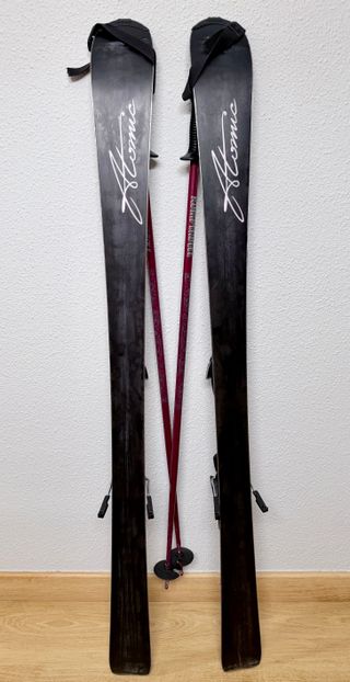 Conjunto completo de esquí para iniciaciarse. No te hace falta nada más. skis ATOMIC Cloud 9 (altura 144). Skis diseñados para mujer para ofrecer control, estabilidad y facilidad giro. Botas ATOMIC B75 COMFORT (TALLA 24.5-25.0). Con forro interior, 4 hebillas metálicas y correa superior para sujección firme. Posibilida de poner bateria trasera para calor extra (no incluida). Casco SH + (TALLA 54 - XS) . Diseñado para ski o snowboard. Ligero, rejillas de ventilacion y orejeras. Todo en muy buen estado y poco uso. Se vende por dejar de practicar ski. Regalo de bastones por la compra del cojunto entero.